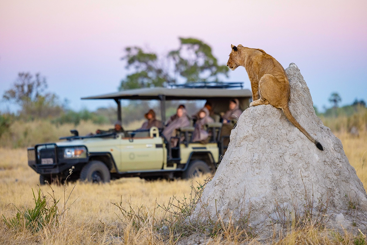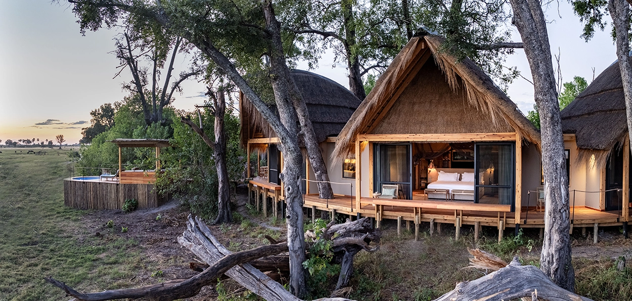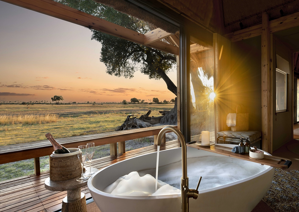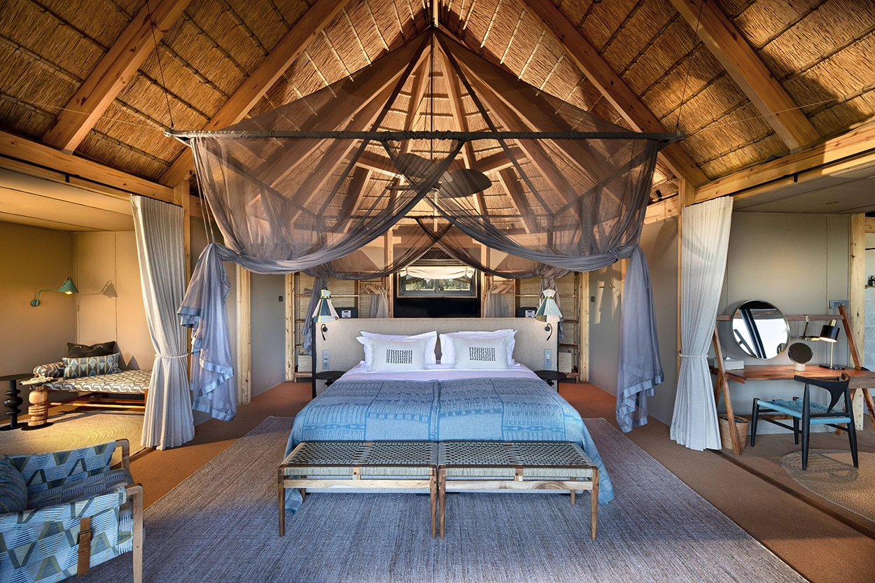 The camp is a partnership with Chief Tawana Moremi, the paramount chief of the Batawana tribe. For years, these private ancestral hunting grounds were closed to visitors. Now, the Batawana have joined forces with the camp that bears their chief’s name to protect the ecosystem and to help support the local community. The lounge and library are filled with original artefacts and photographs, offering a window into this rich heritage.