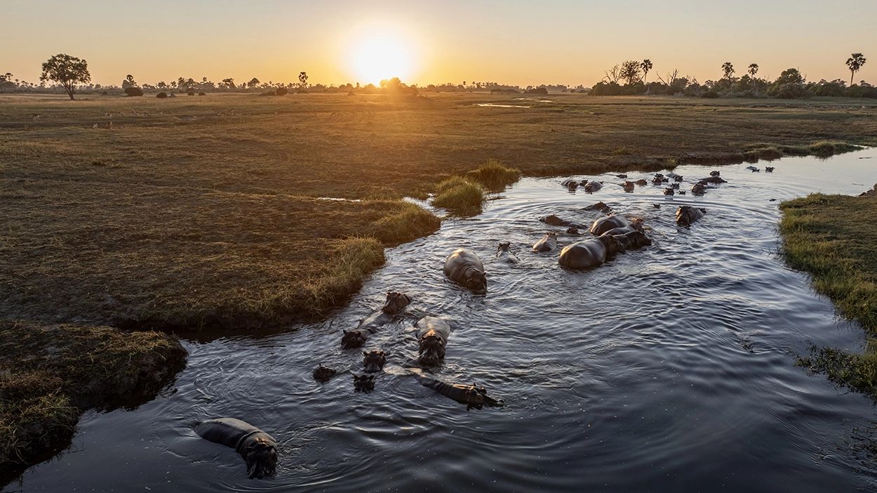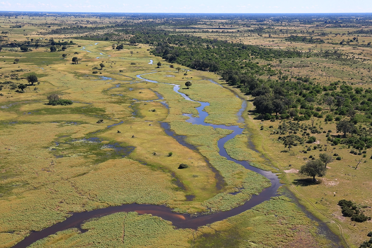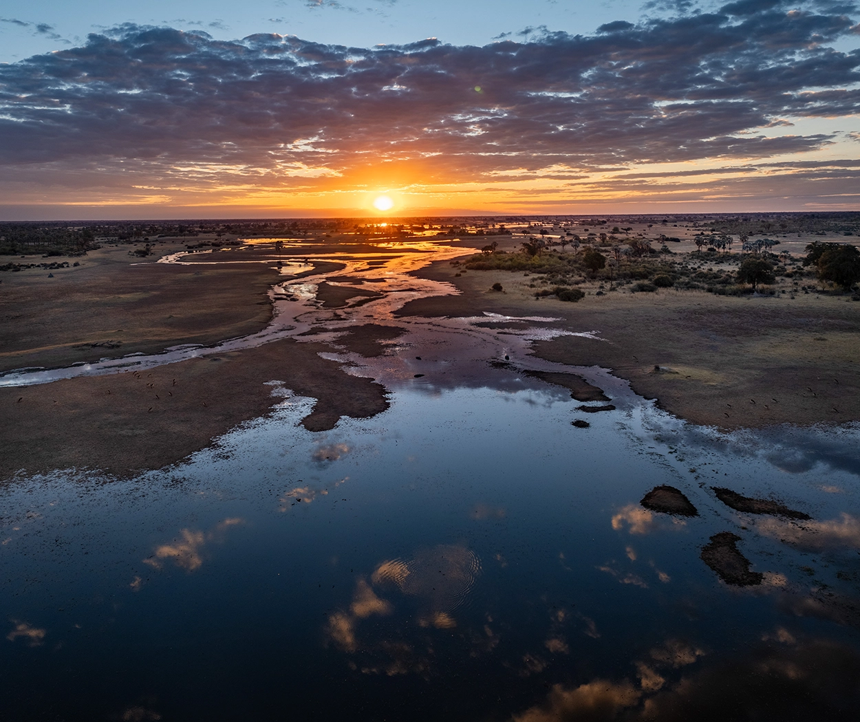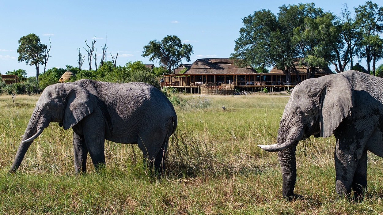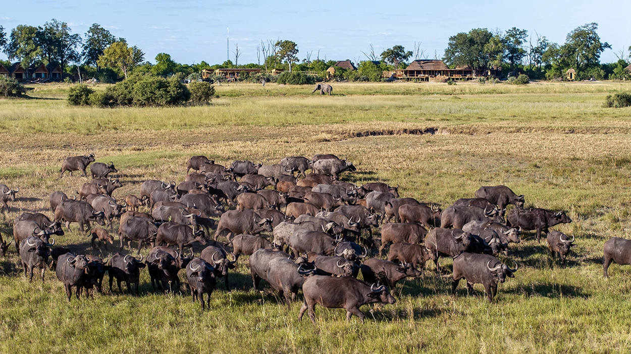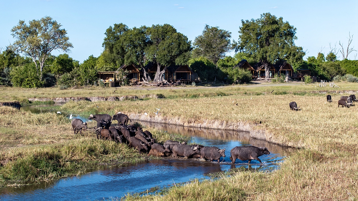 The whole camp overlooks the Gomoti River and the waterholes and tributaries which branch off it. There are varying amounts of water depending on the season. But the animals are always here, coming and going—you can sit and watch them for hours.