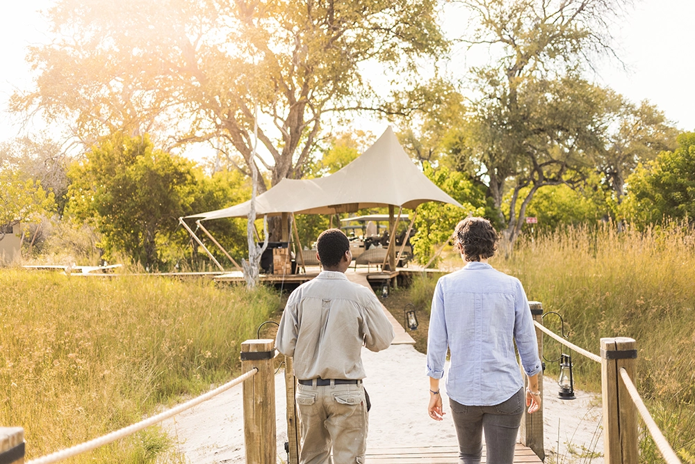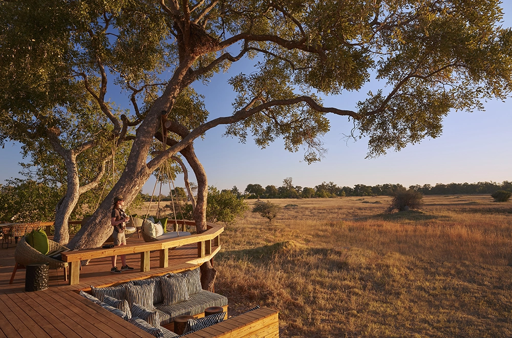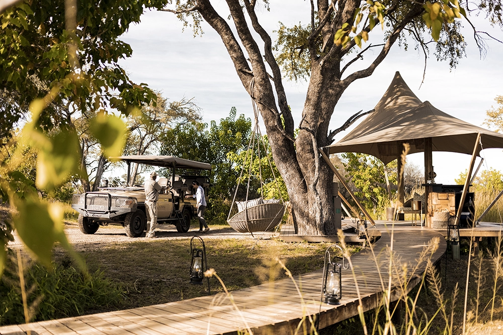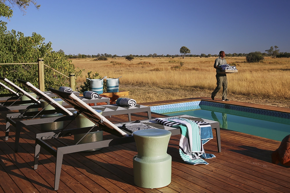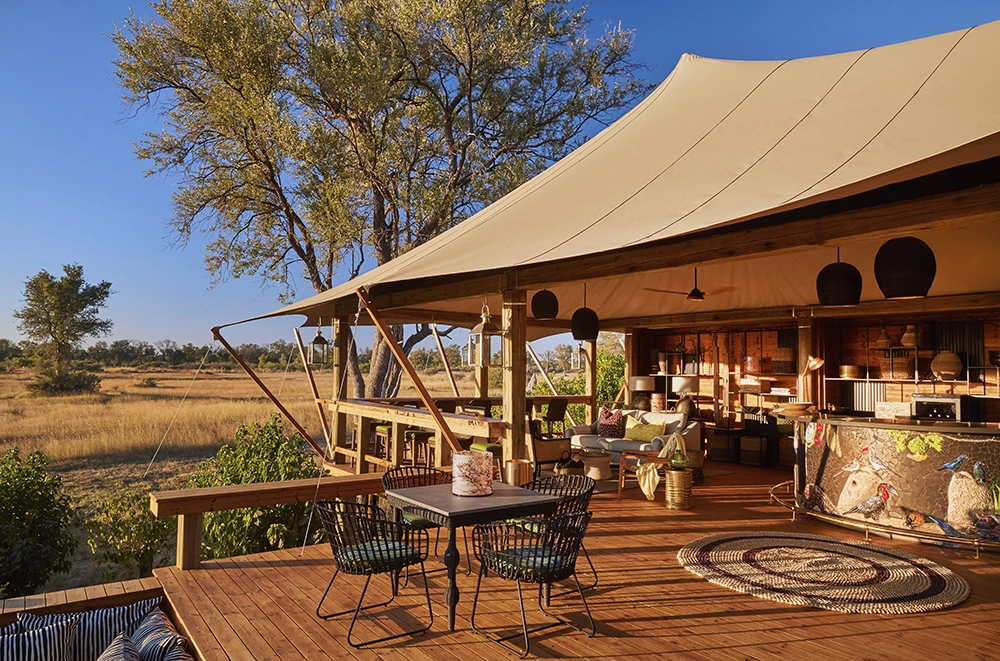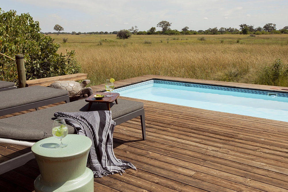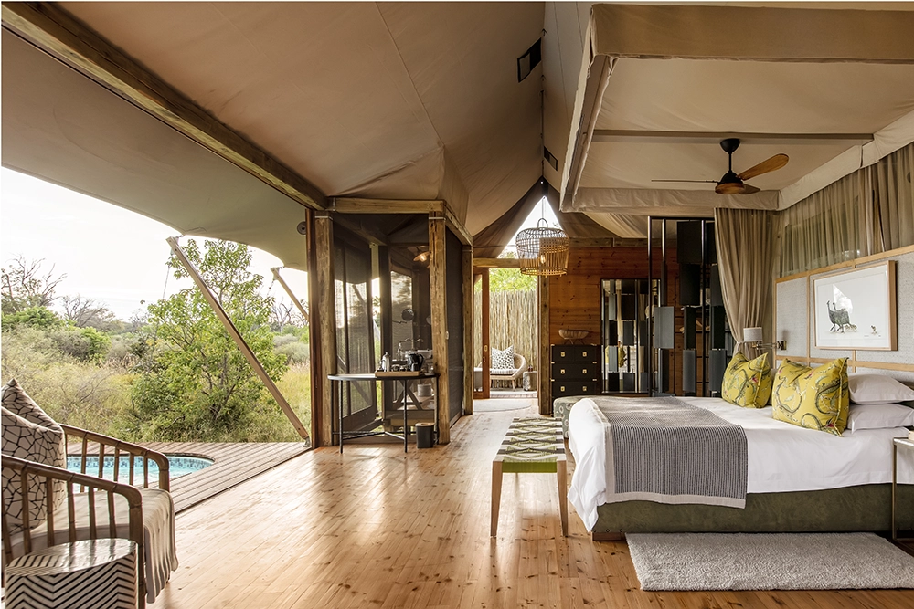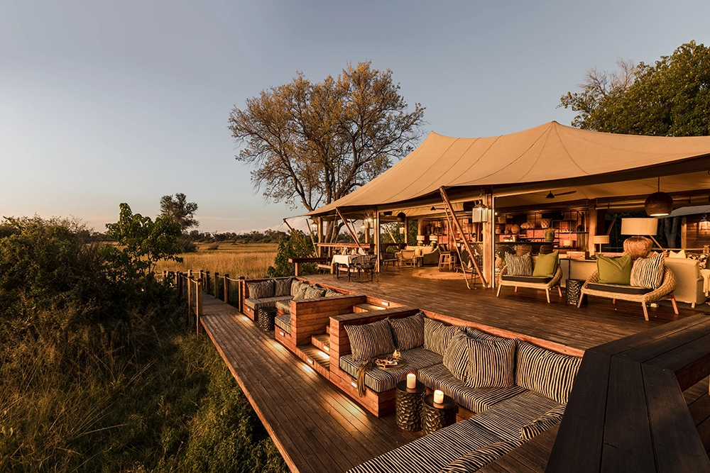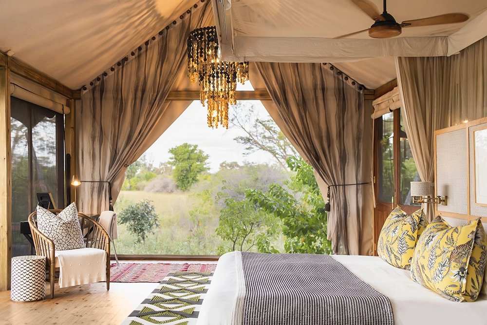 To infinity and beyond. Well, not quite, but space is an enormous factor at Tuludi Camp. 200 000 hectares of it, here in the remote, pristine wilderness of the Khwai Private Reserve. Everything about Tuludi exudes space and serenity. It’s a fairy tale Okavango Delta safari. From its carefully considered positioning to make the most of a busy waterhole, to the seven thoughtfully appointed tented rooms set along a treeline of leafy leadwoods. This is a sophisticated, intimate Okavango escape.