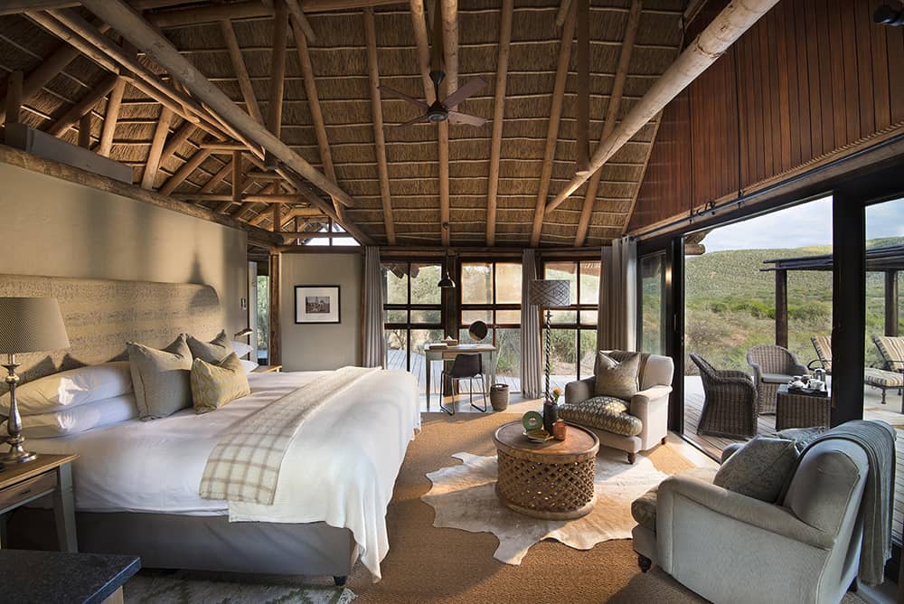 As the name suggests, Great Fish River Lodge, a little Eastern Cape hidey-hole is pretty great. The lodge sits, you guessed it, on the banks of the Great Fish River which winds through 54,000 malaria-free acres of private game reserve. It has nine spacious suites, with their floor-to-ceiling glass-doored bush views and timelessly elegant design, are some of our favourites. In Kwandwe, game drives and nature walks are the order of the day. Track black and white rhino, elephant and buffalo on foot. And long, lazy siestas in the shaded sala alongside your private plunge pool are mandatory. (Hey, we don’t make the rules.) It’s peaceful and perfect in equal measure.