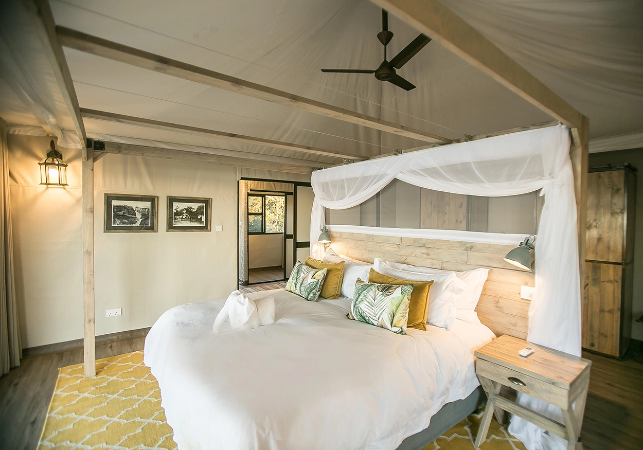 Don’t be fooled by the word “tented;” each of the ten suites features private plunge pools (with views of the Zambezi), AC to keep you cool, indoor and outdoor showers, and an outdoor bath (because who wouldn’t want to bathe under the stars?).