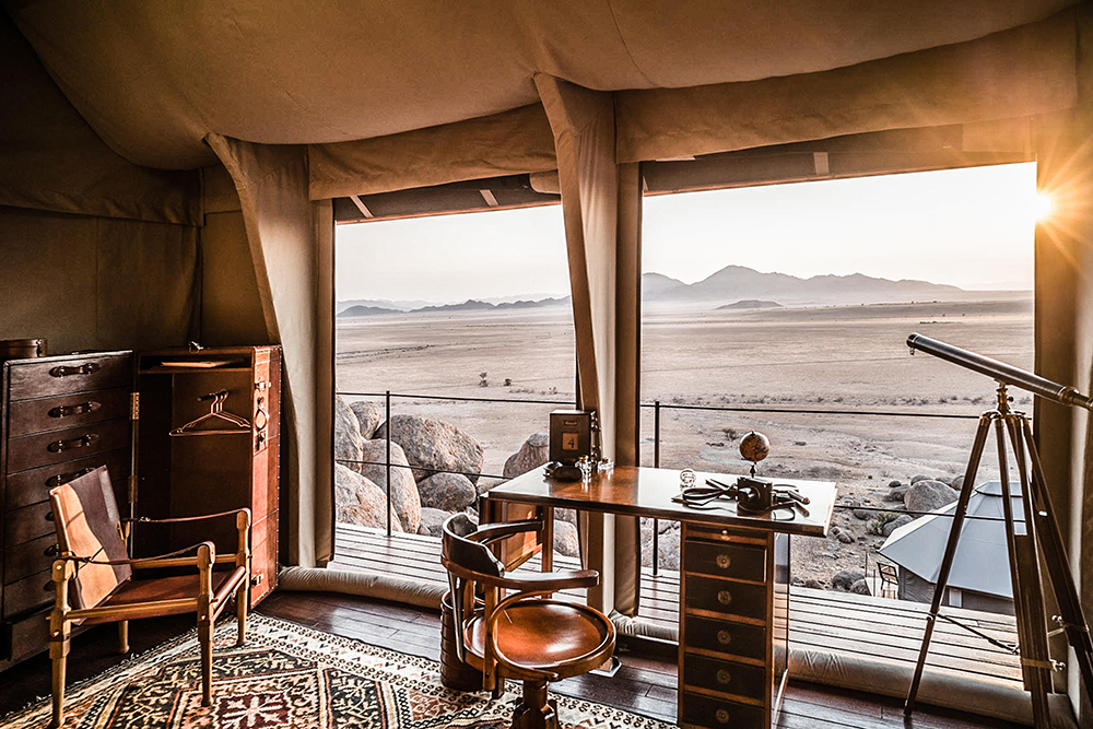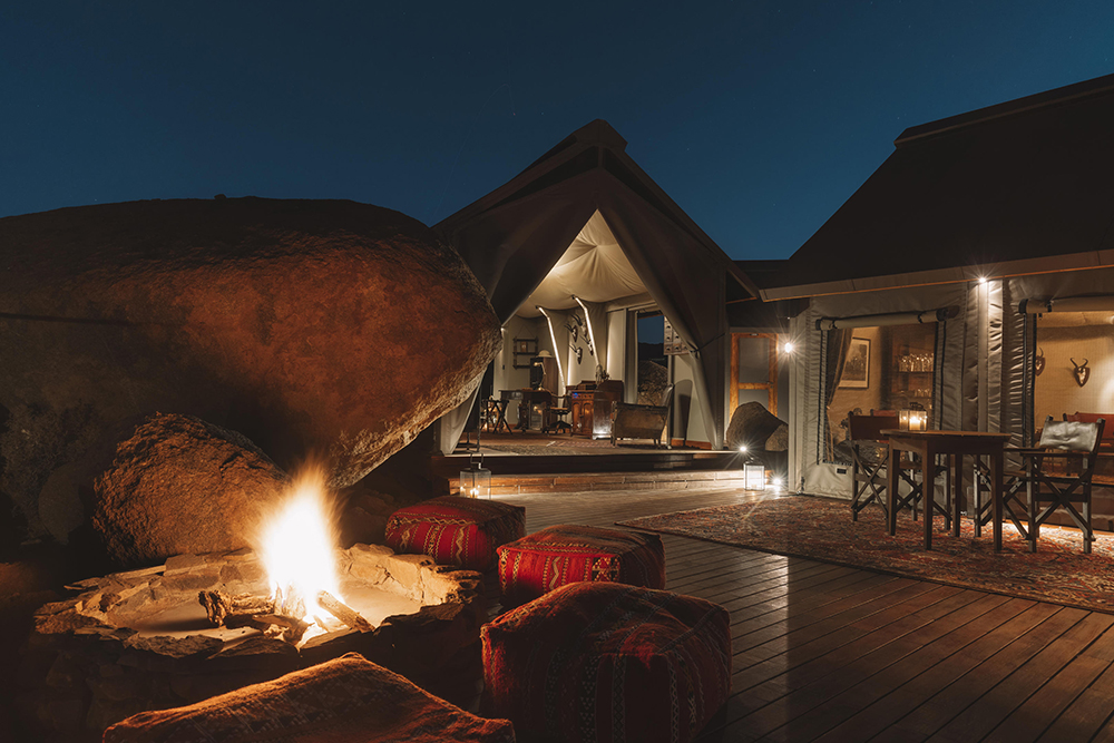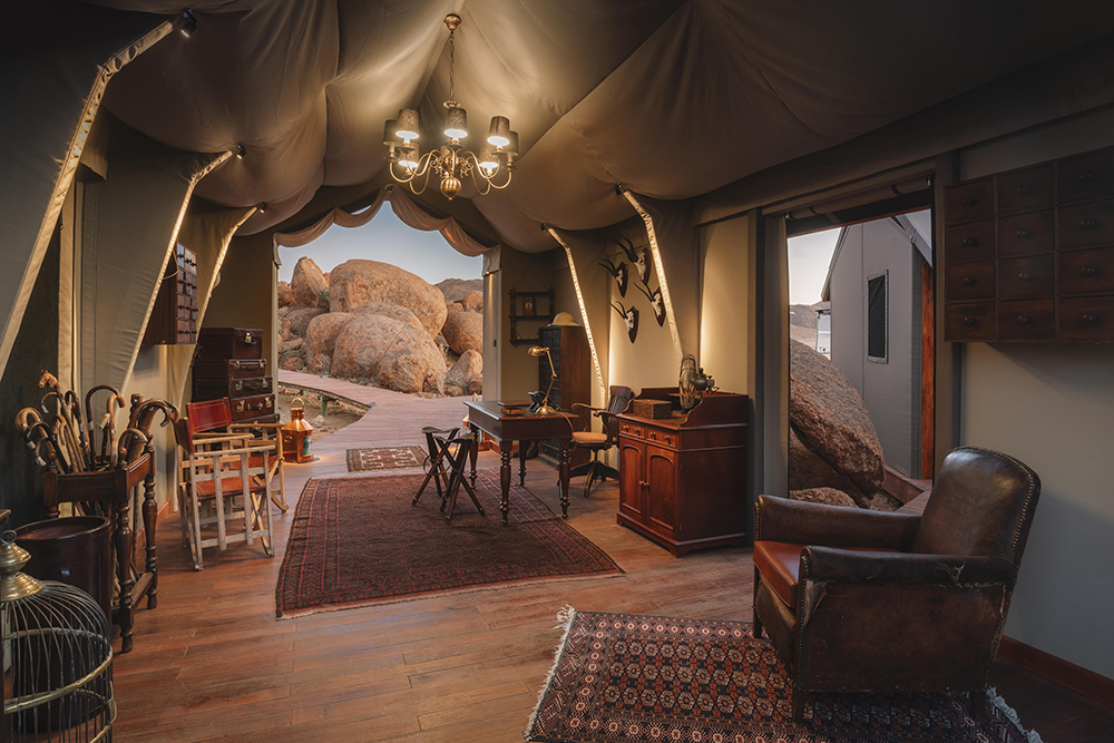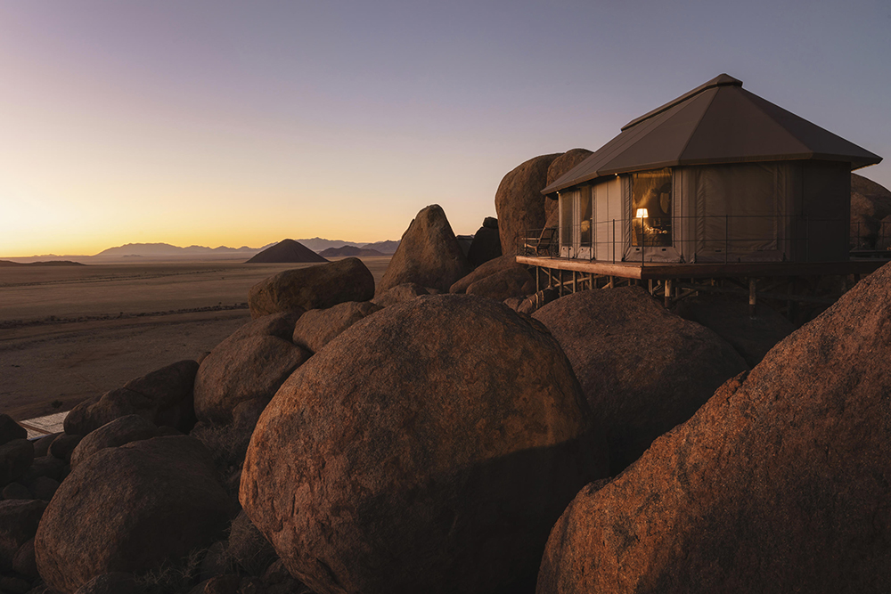 Artfully tucked among a tumble of granite boulders sits Sonop Lodge, a tented throwback to the grand desert expeditions of the 1920s, where the only greenery you’ll see for miles is the gleaming top of a billiards table. Sonop’s elevated position with spectacular views has earned its status as our honorary desert ‘treehouse’. Here, life moves at a deliciously slow pace. Start the day with a guided desert yoga experience. Explore the surrounds on Shanks’s pony – or even a real one, if you like. Dine on five stylish courses served in a sea of crystal and polished-within-an-inch-of-its-life silverware. And end each picture-perfect day with a magical movie, snuggled up under the stars in the camp’s open-air cinema.
