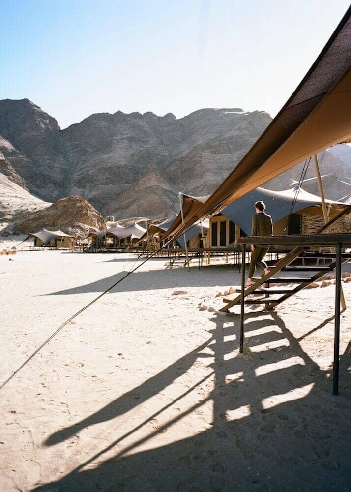 Remote is a word you hear a lot when it comes to Namibia. And for good reason. Just two million people inhabit this Texas-sized country. The rest is desert and wildlife – two things in no short supply at the far-flung Hoanib Valley Camp. Here you’ll find just six Bedouin-style tents tucked away at the foot of the mountains. Blink and you could be on Tatooine (if it weren’t for all the giraffe). Spend your days tracking black rhino, marvelling at the herds of desert-adapted elephants and oryx, or thumbing the pages of Vanishing Kings while their royal roars rumble in the distance.