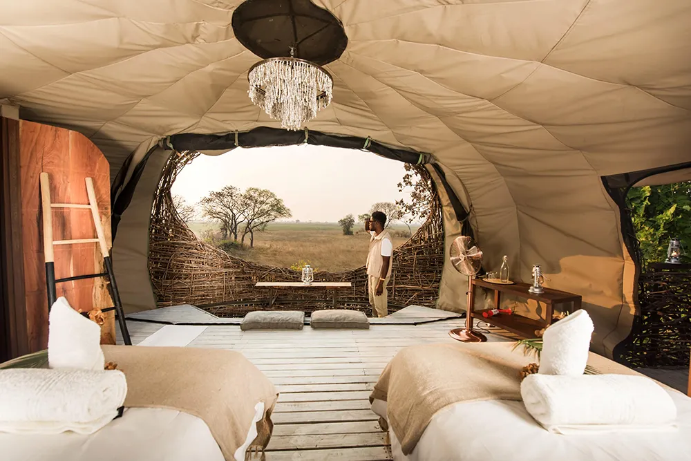 This camp is known for its nested accommodation, but there is much more to it. Indeed this is the product of a love story. It is the tale of a team who fell in love with Zambia’s Busanga Plains and who poured themselves into it. The result is a fantasy escape in the middle of nowhere. It’s one of Africa’s best kept secrets and a place where the wetland ecosystem overflows with a diversity of life.