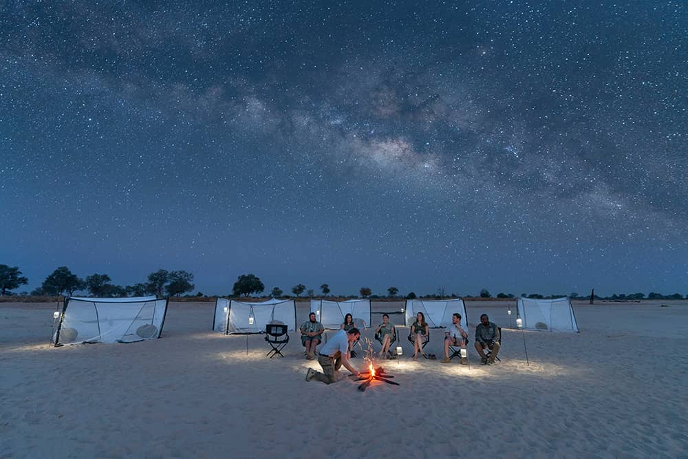 • Off-grid (and off-script) afternoons spent watching giraffe come down to drink in front of camp.