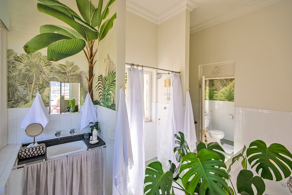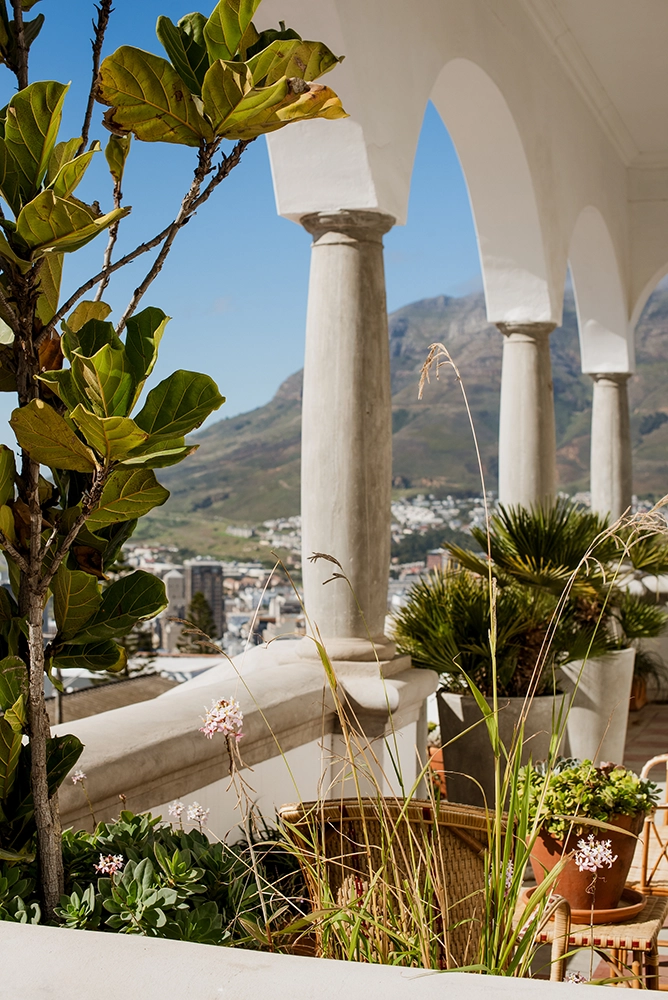 Perched at the very top of Signal Hill, the harbour and twinkling city spread below like a dinky toy town, dwarfed by the grand massif of Table Mountain and craggy Devils Peak. An unassuming entrance – no signage, no doorman – but a warm welcome once you step inside. In the Salon, pink floral sofas and antique tables piled high with books and plants. Comfortable armchairs, fireplaces, large arched doors framing the most gorgeous city views, and a rooftop that makes you see why this is the most beautiful city in the world.