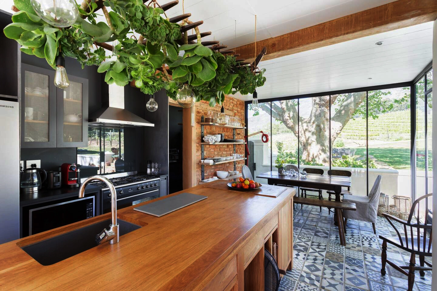 The building has been completely reimagined with curated artworks, artefacts, linens, exposed original brickwork, secret Zanzibar-style niches, and loads of Africanised charm. Once rested and fed (there’s a full and stunning kitchen) take a walk to any of the neighbouring wine farms. Visit Kirstenbosch Gardens, shop, hike, tour, and sip some more. At night, indulge in the solitude with a self-catered BBQ on the patio at Hope Cottage while listening to music (which the cottage owners recommend you do at least once!). Snuggle up in front of a roaring fire in the villa’s original brick fireplace or catch up around the large dining table in the glass conservatory, which provides uninhibited views and extra living space. Watch the seasons change! There’s also Apple TV, Wi-Fi, and a backup power supply.