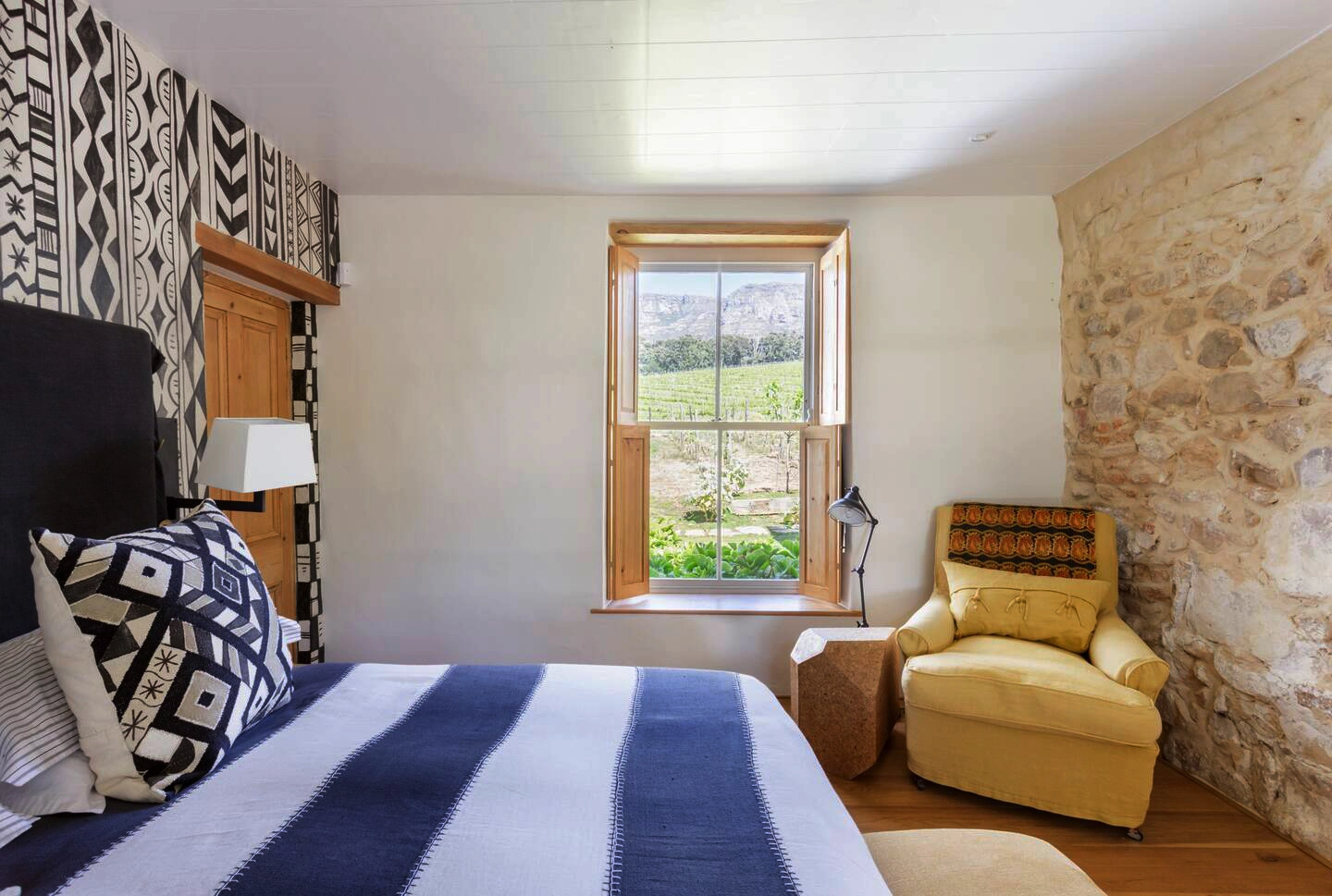 In its new life, the two-bedroom Cape Dutch-style villa peacefully overlooks Simon van der Stel’s legendary vineyards. It’s the only cottage open to guests in this area of the farm and is as close to the V&A Waterfront and CBD as it is to places like Muizenberg (Surfer’s Corner) and jewels like Kalk Bay.