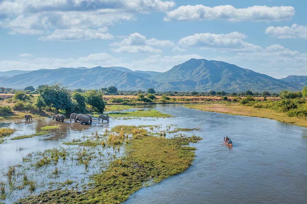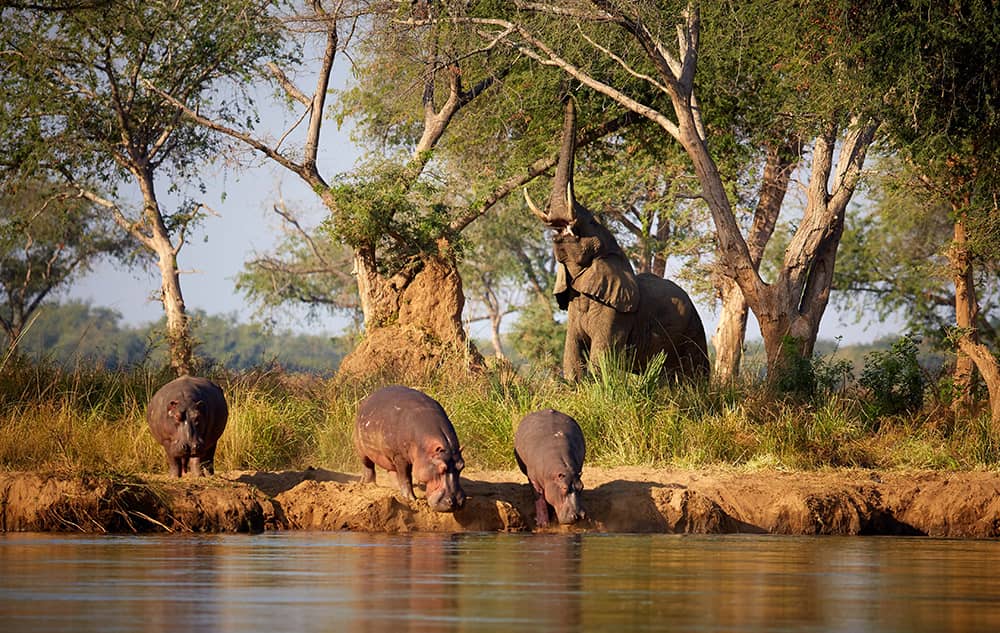 Zambia is a massive landlocked country and home to three great rivers: the Luangwa, the Kafue and the mighty Zambezi. These permanent water sources attract countless animals, trailed in turn by eager safari goers.