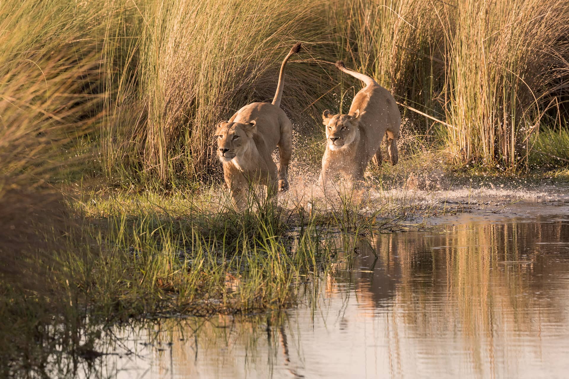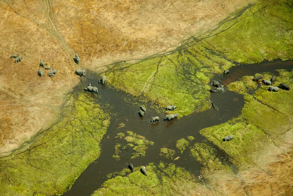 At the height of Botswana’s dry winter, the Okavango Delta triples in size, fed by Angolan rains. As the floods visibly creep in – inch by inch – so too does the wildlife. Thirsty elephants migrate from across the continent in their thousands, and water-adapted lions wade through the waterlilies on the heels of thronging herds of buffalo and giraffe.