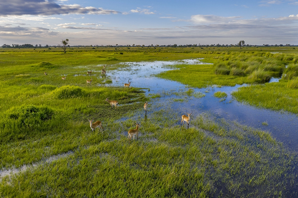In an incredible twist of nature, the Delta floods during the dry season. Rains that fall in the highlands of Angola slowly drift south and arrive just in time to turn the parched plains into a watery wonderland. Between May and October, wildlife flocks to this oasis, drawn in from miles away, and the game viewing becomes nothing short of extraordinary. But don’t sleep on the green season. When the Botswanan rains return, so do the zebra, wildebeest, and lechwe to calve, followed by a sharp-eyed cast of predators. The landscape becomes impossibly lush, and the birdlife explodes, turning every branch and watering hole into a photographer’s dream.